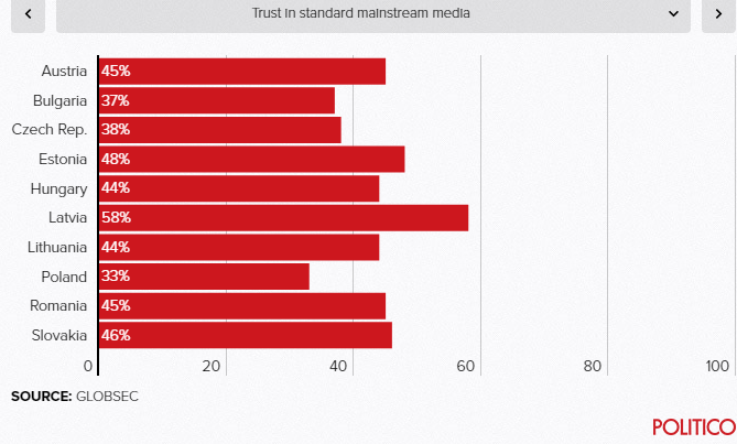 В Унгария 64 на сто от хората смятат, че правителството оказва влияние върху медиите, на това мнение са 62 на сто от анкетираните в Полша. 57 на сто от австрийците твърдят, че подобно влияние идва от "олигарсите и силните финансови организации".