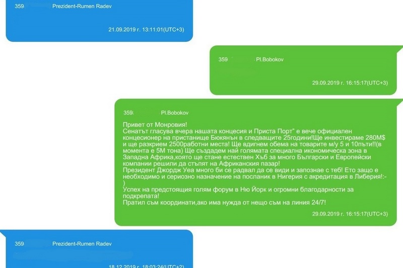 В чатовете обаче се вижда само какво е писал Бобоков, но не и какво отговаря Radev. Тази информация е изтрита.