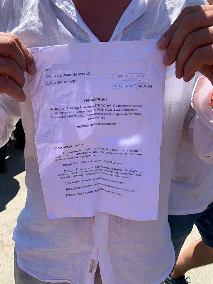 Той показа уведомлението към общината в Бургас за организираното от него мероприятие, като посочи, че униформените пропускат само симпатизантите на ДПС, но не и участниците в "масовото плажуване". По думите му мястото на "пропускателния пункт" е своеобразна тапа, на която около е възможно да се срещнат двете групи - което е предпоставка за възникване на напрежение.