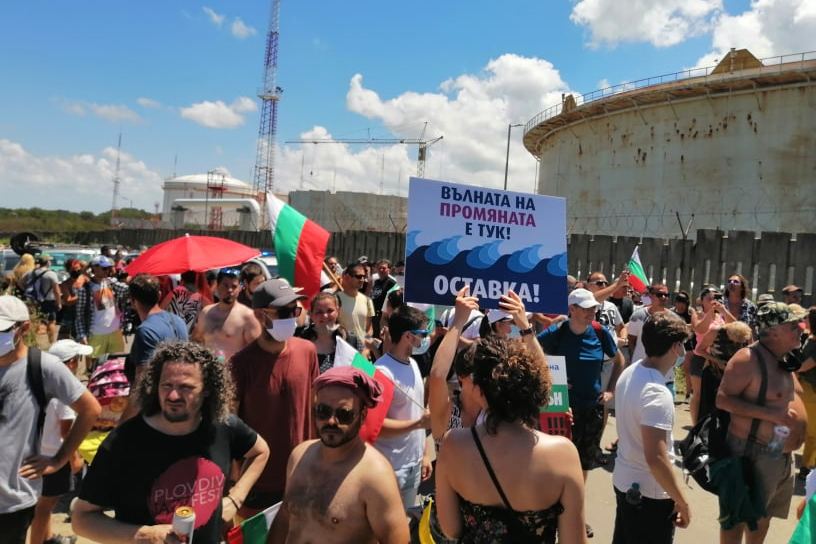 Полицията отказваше да пусне "масово плажуващите" близо до резиденцията, въпреки съгласуването на организацията с община Бургас. Пред самата община се оформи друг протест - заради действията на униформените. А кметът Димитър Николов обяви, че е безсилен пред МВР - решението било на местната структура на министерството - за да не се предизвикват етнически сблъсъци. Затова от "Демократична България" решиха да блокират пътя за Созопол.