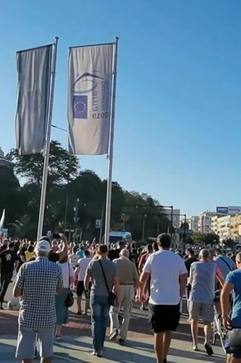 Около 200 души протестираха и в Бургас, съобщи агенция "Фокус".