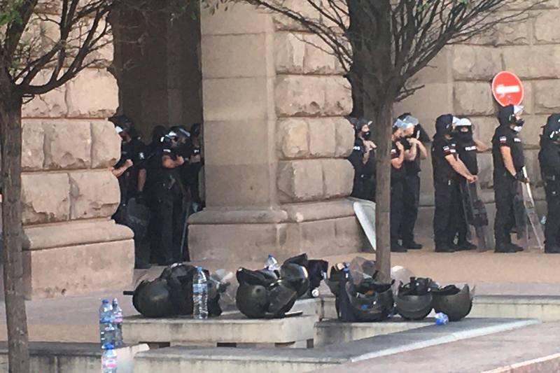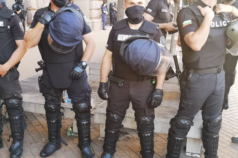 „Ситуацията се промени когато сред протестиращите се появиха групи, които явно търсеха агресия и започнаха да мятат бутилки с вода по нас, предмети, някои пръскаха със спрей. В този момент трябваше да използваме сила, но независимо от това до последно държахме да няма наранени хора“, казаха още от МВР.