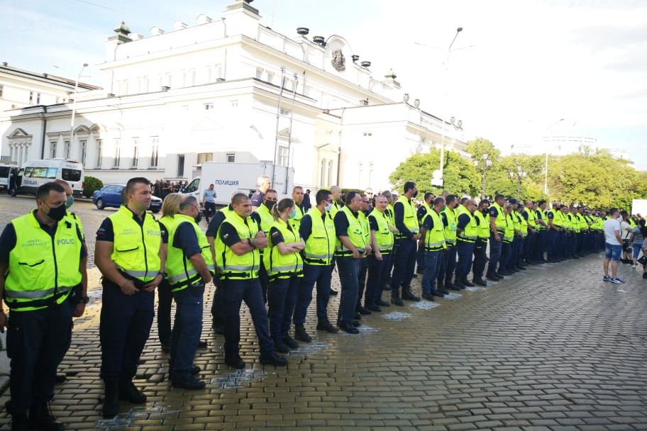 Има огромно полицейско присъствие. Много от протестиращите и служителите на МВР не носят предпазни маски. Към момента ситуацията е спокойна. Единственият инцидент бе хвърлена бомбичка, от която е пострадал леко полицай, съобщи бТВ.