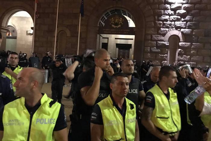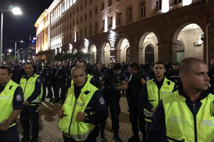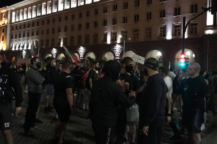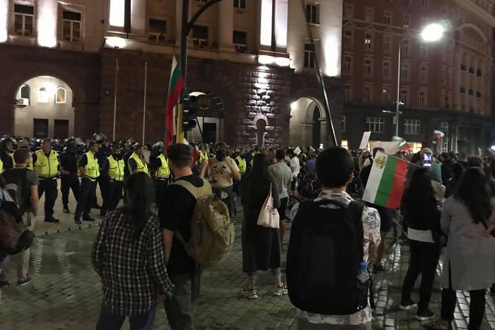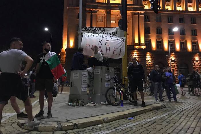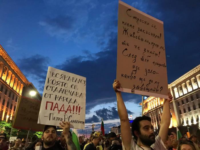 Всичко това стана, след като малко след 21,00 часа протестиращите за осми пореден ден граждани преминаха по обичайния си маршрут и се върнаха в т.нар. Триъгълник на властта - пред Министерския съвет. По-рано през деня демонстрантите обявиха, че "главата на мафията" се казва Ахмед Доган, а премиерът Бойко Борисов е само "прислужник". Главният прокурор Иван Гешев пък бе определен като "милиционер", който никога не е вярвал, че ще достигне до този пост. Тази вечер освен оставките на кабинета и Гешев протестът поиска и още една - на генералния директор на БНТ Емил Кошлуков.