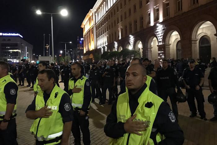 Протестиращите запяха химна. Полицаите сложиха ръце на сърцата си.