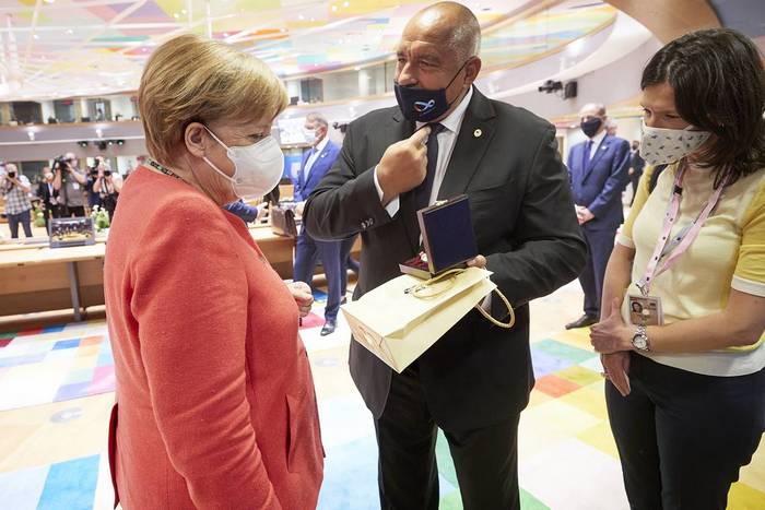 Борисов съобщи във фейсбук, че е подарил на Меркел сребърна бъклица с розово масло. Той пожелал и успех на германското председателство на Съвета на ЕС.
