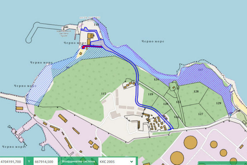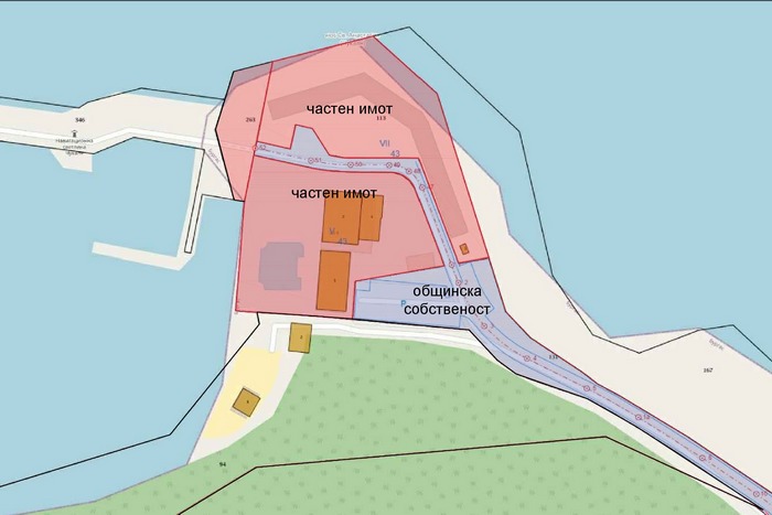 Общинската улица не води до морския бряг, а до частен терен и това е видно от действащата кадастрална карта.