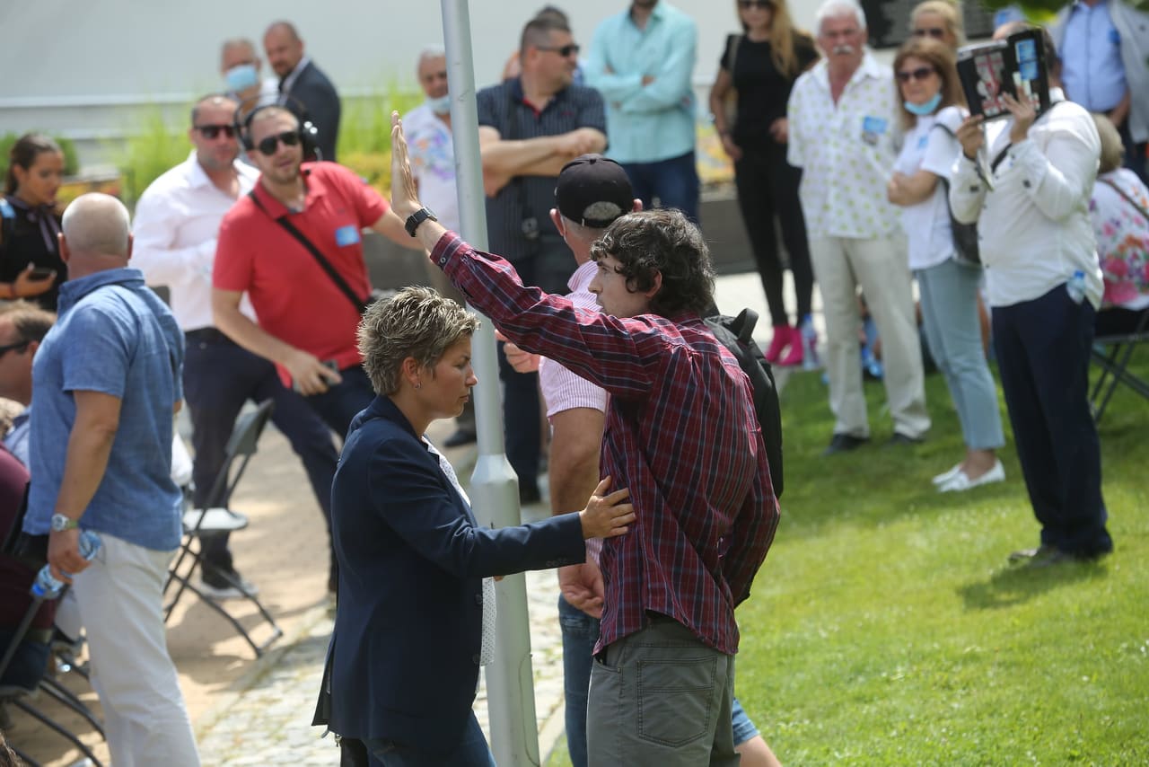 Така изглеждаше днешната извънредна национална конференция на ГЕРБ, провела се по обяд в столицата - на открито. Фактът, че мероприятието, събрало около 4000 души актив на управляващата партия, бе навън - в двора на "София тех парк", го направи лесно достъпно за почти всеки, който искаше да влезе "на терена". Делегатите бяха обградени от локални протести около комплекса, имаше спиране на движението, но по-любопитното - яки момчета, строени около основната зона на конференцията, извеждаха успели да проникнат лица, които скандираха насред официалните речи, в т.ч. на партийния лидер - премиера Бойко Борисов, посягаха и на журналисти, които ги снимат, в т.ч. на репортер на Клуб Z (вербално), на колежката от "Свободна Европа" Полина Паунова (вече физически). Има свидетелства и за още посегателства - срещу медии и срещу демонстранти срещу правителството.