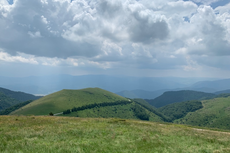 В един момент се стига до път, от който се открива панорама към най-високите върхове на Стара планина - Ботев, Триглав, Марагидик...
