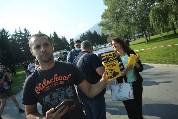 В същото време младежката организация на "Да, България" - "МлаДа България", организира "Масово посрещане на Гешев". Протестиращи, начело със съпредседателя на "Демократична България" Христо Иванов и шефа на общинарите на ДБ в София и бивш съдия Методи Лалов, се събраха на паркинга пред резиденция "Бояна" да покажат на главния прокрор, че "настояват за неговата оставка и за реформи в прокуратурата". И попитаха: има ли независим прокурор, готов да разследва шефа си.