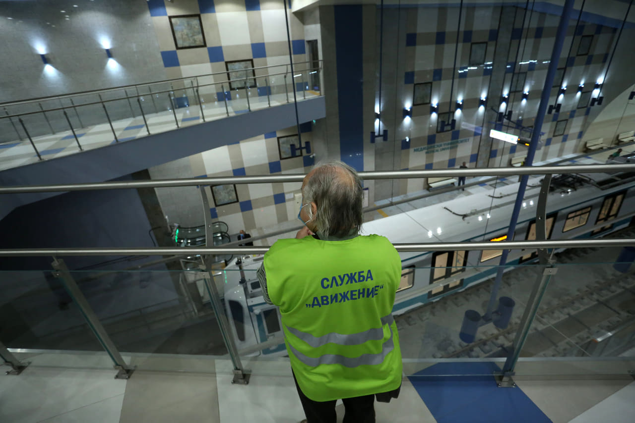 Церемонията бе обявена за 13 ч, а входът на метростанцията - заварден от полиция - но не и в мащабите на "посрещане на министър-председателя". Официалните лица - Фандъкова, министърът на транспорта Росен Желязков, председателят на Столичния общински съвет Елен Герджиков, зам.-кметът по финансите Дончо Барбалов и директорът на "Метрополитен" инж. Стоян Братоев обаче дойдоха директно под земята - с влак.