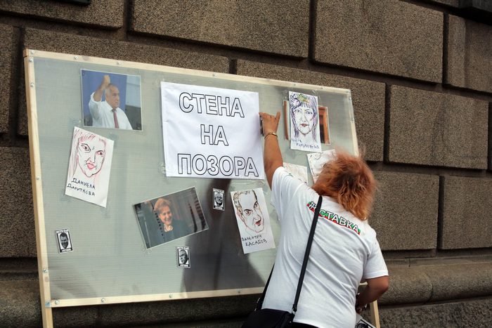 Налице отново беше и традиционната стена на позора, на която се слагат изображения на политици.