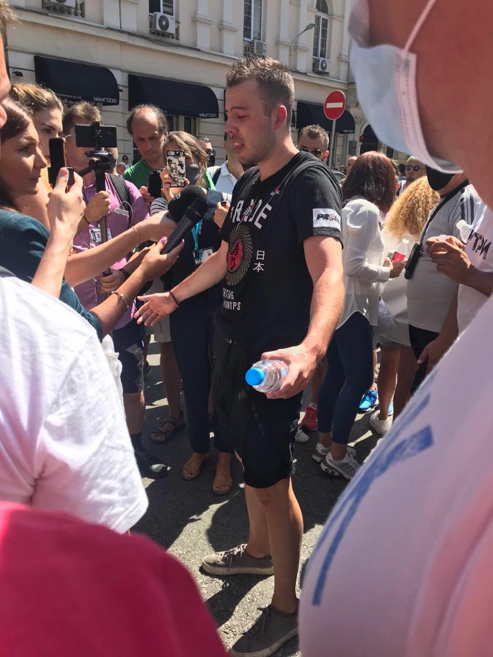 Към 12.07 часа от трибуната се чу призив лекар да отиде към Министерския съвет, където има колабирал човек. Линейка беше пропусната през протестиращите, съпътствана от полицаи. Мъж на около 55 г. падна и остана доста дълго време в безпомощно състояние на паважа. Точно докато медиците оказваха първа помощ на пострадалите, от полицията пак пуснаха сълзотворен газ.