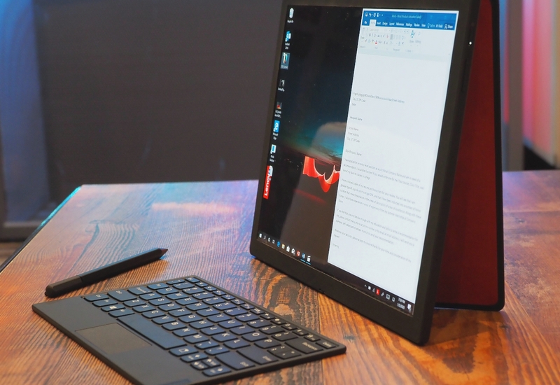 Макар да го наричат лаптоп, на пръв поглед това е голям таблет с 13,3 инча OLED дисплей, който може да се затваря като книга. Двете половини не се затварят до край, а оставят малък процеп, в който се събира миниатюрна Bluetooth клавиатура, разработена специално за устройството. Освен с клавиатура, която се зарежда безжично, X1 Fold идва в комплект с писалката Lenovo Mod Pen и Easel Stand - специална стойка, която позволява по-лесното превръщане на целия лаптоп в екран..