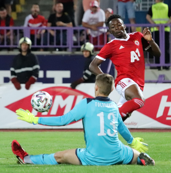 ЦСКА-София игра без Али Соу, който е пред трансфер в чужбина и в понеделник, когато трансферният период приключва, може да премине във френски клуб. Стамен Белчев обяви, че решението Соу да остане извън групата е негово.