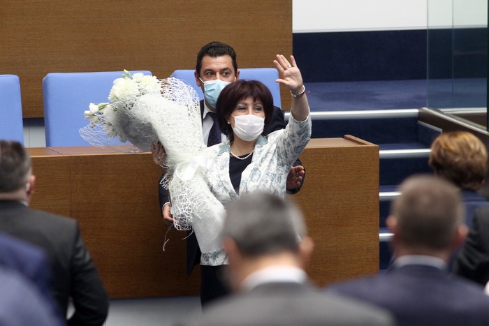"Имаше моменти, в която на самата мен ми се искаше да изчезна, направо да скоча от някоя канара от Родопите", прочете словото си по повода председателката на НС.