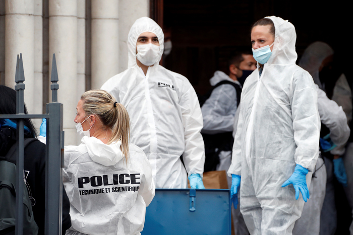 Жертвите включват две жени и мъж. Нападателят е прерязал гърлото на една жена и е ранил смъртоносно с нож мъж в църква. Пак с нож е убил другата жена в близък бар, предаде в. "Монд".