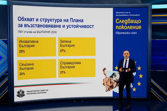 Най-много средства от европейския фонд за възстановяване от пандемията ще отидат за "Зелена България" - 37% от общо над 12 млрд. евро безвъзмездно финансиране. Това предвижда проектът на правителството, представен от вицепремиера Томислав Дончев днес.