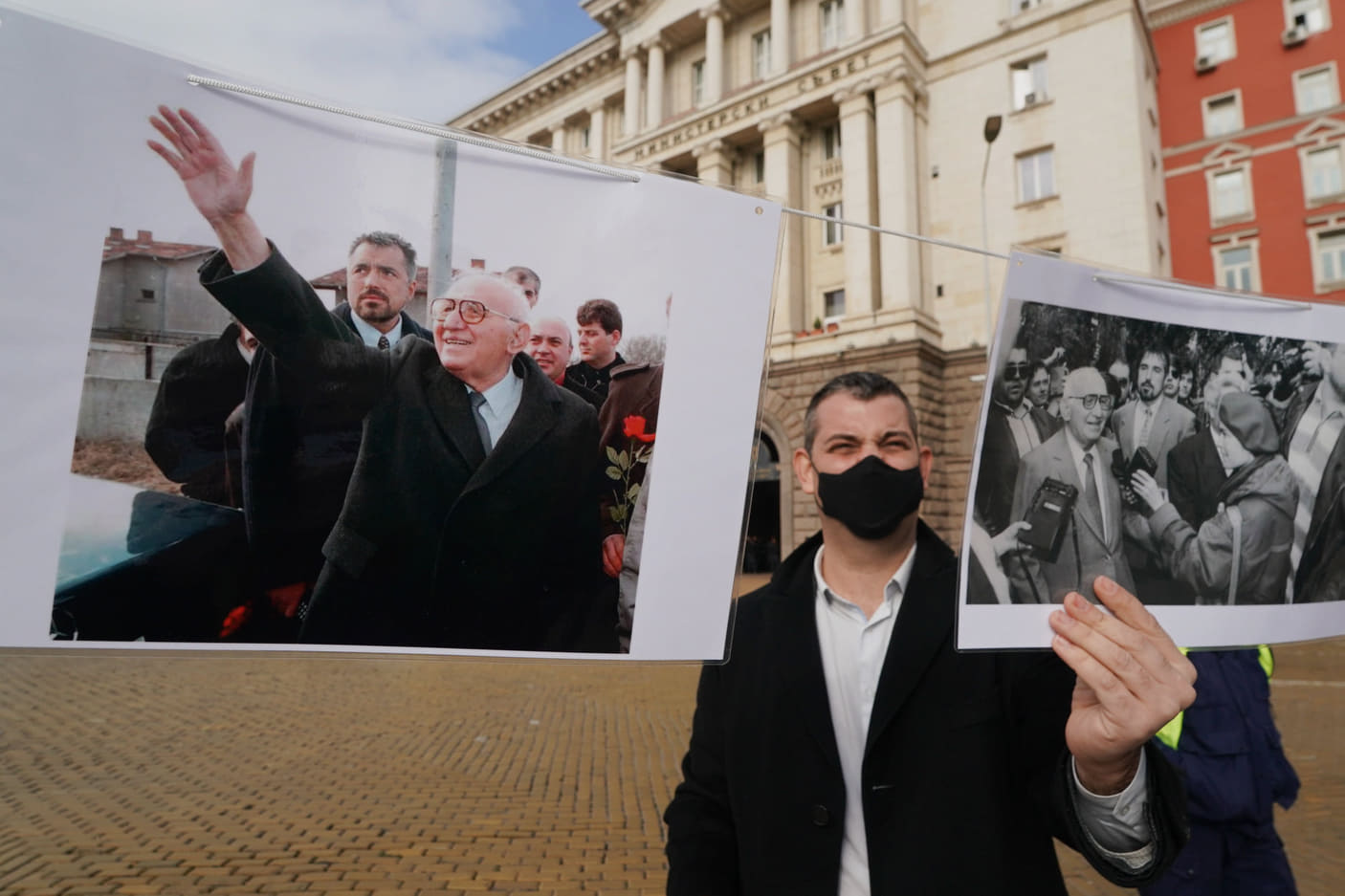 Акцията бе под надслов "От Диктатор до Диктаторче". И се изразява в импровизирана изложба от кадри, които напомнят за историческата връзка между Живков и настоящия министър-председател Бойко Борисов. А тя е, че Борисов беше бодигард на последния комунистически лидер у нас.