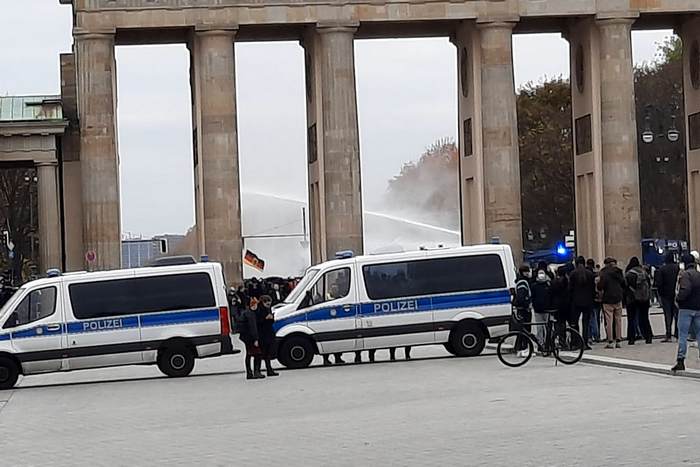 Хората започнаха да се събират от 14 часа около Бранденбургската врата. Заради очаквания от сблъсъци и опити за нахлуване в парламента, полицията охраняваше района с над 2000 души, бе разположила водни оръдия и патрулираха дори хеликоптери. Водните оръдия ежеминутно изстрелваха струи над главите на протестиращите, за да се намокрят и това да ги накара да си тръгнат. В крайна сметка полицията разпръсна протеста, след като множеството започна да атакува униформените с пиратки, стъклени бутилки и камъни. Като причина за разпускане на протеста официално бе посочено нарушаването на мерките сещу пандемията в момента – почти никой в демонстриращите плътно един до друг над 10 000 души не носеше маска.