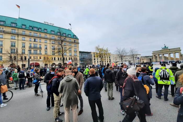 На протеста в Берлин днес много хора издигаха плакати „ГДР 2.0“, като обвиняваха правителството, че действа по-рестриктивно и от диктатурата в бившата Източна Германия. „Тогава също ни гонеха от улиците, но поне ресторантите не затваряха“, коментира един от участниците. Към протеста се присъединиха и противници на носенето на маски, невярващи в съществуването на COVID-19, привърженици на конспиративни теории за масово чипиране на населението и дори фенове на Тръмп.