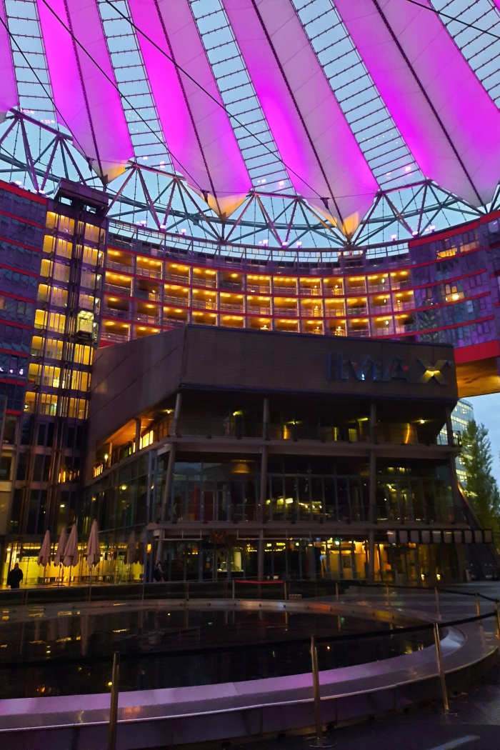 Тъжно и страшно е и на Потсдамер плац, там само куполът, напободяващ вулкан, осветява в различни цветове празния паваж долу.