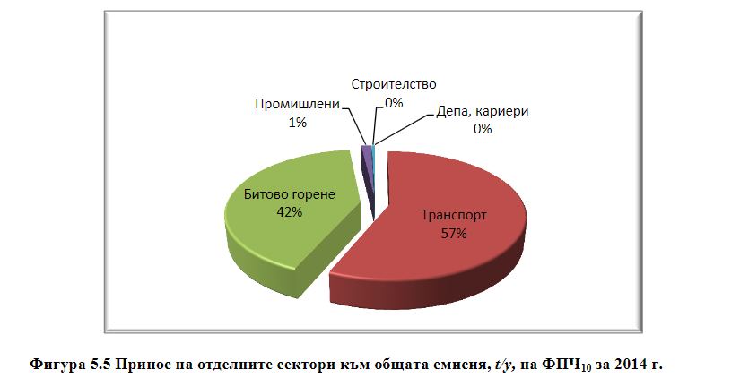Според друг анализ на Химикотехнологичния и металургичен университет в София от 2014 г., на който е базирана и програмата за контрол на качеството на въздуха в столицата, тогава основният фактор за замърсяването е бил друг. По-точно 57% от емисиите на ФПЧ10 са от автомобилния транспорт, 42% - от битово горене. Това означава, че в рамките на 6 години замърсяването от автомобили в София като принос към общото замърсяване трябва да е спаднало с 48%.