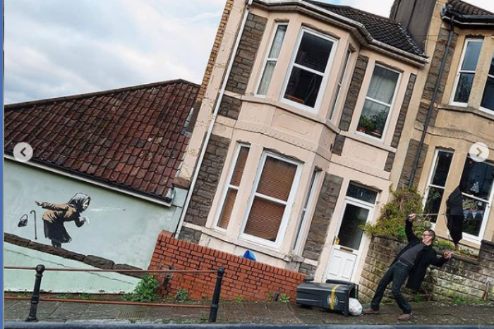 Новото произведение на изкуството, което все още тайнственият уличен художник нарече „Aachoo !!“ (”Апчих !!”), се появи на страничната стена на къща в Тотердаун, предградие на британския град Бристол.
