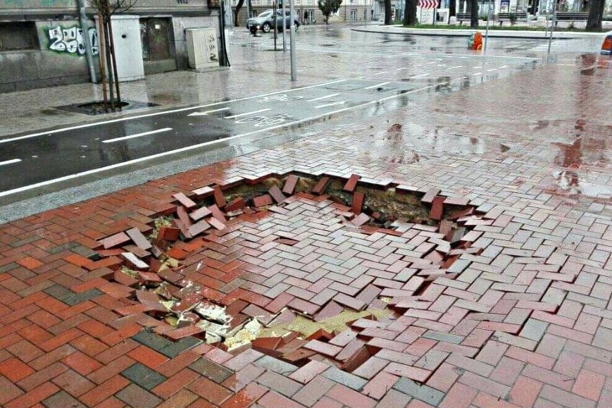 В днешния ден и "Спаси Варна", друго НПО, сигнализира за пропаднал тротоар в морската столица.