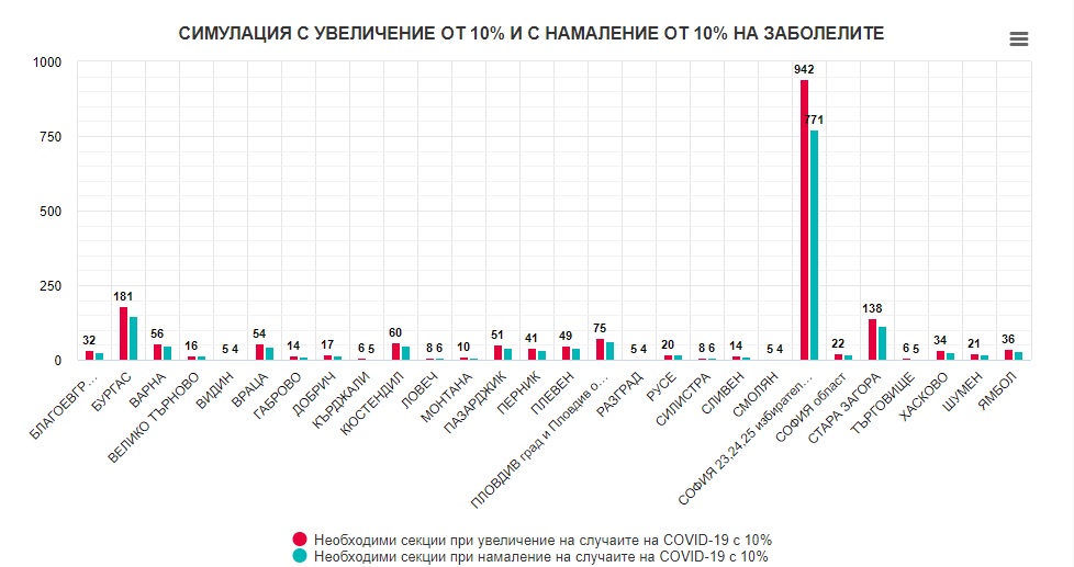 Ако към датата на изборите се запазят настоящите нива на заболеваемост, а необходимите минути за гласуване са 20, според изчисленията ще са нужни 1813 мобилни секции, за да може всички болни и карантинирани да гласуват.