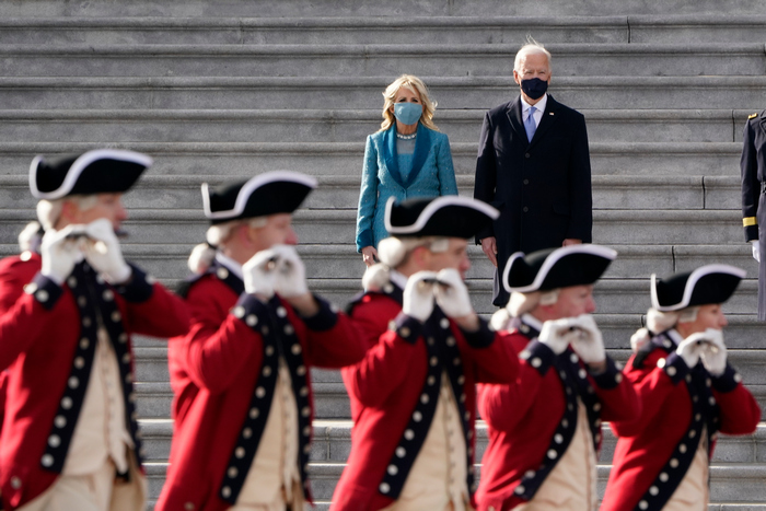 Церемонията беше необичайна. Пространството пред Капитолия беше опразнено заради противоепидемичните мерки и там, където преди четири години се събираха стотици хиляди зрители, в тревата бяха забити стотици хиляди знаменца. Имаше места за ограничен брой посетители, но жителите на столицата можеха да наблюдават клетвата предимно по телевизията или онлайн.