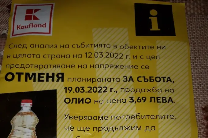 "След анализ на събитията..." в обектите си в цялата страна от събота "Кауфланд - България" отменя предстоящата промоция на слънчогледово олио.