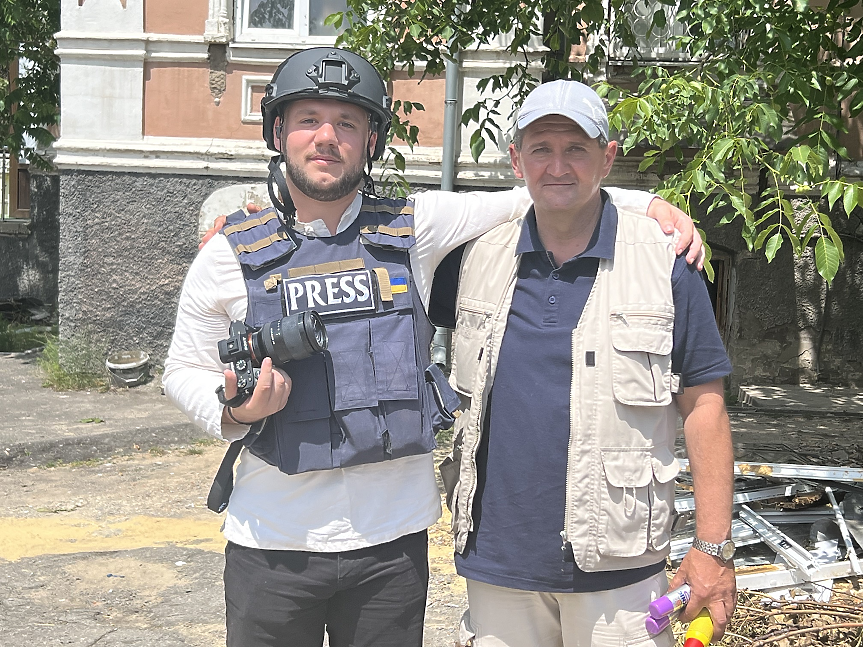 „3 от 7 села в общината са окупирани, 1 е в сивата зона. Преди бяхме 19 600 души, вече почти никой не е останал. Вчера ни обстрелваха, днес може да чуем бомбардировките в околността. Ако останете, може и да ги почувствате“, шегува се и Хоростянов.