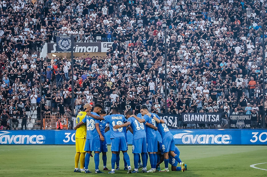 През първата част отбраната на "сините" действаше перфектно и гърците не успяха да създадат положение пред препълнените трибуни на легендарния стадион "Тумба".