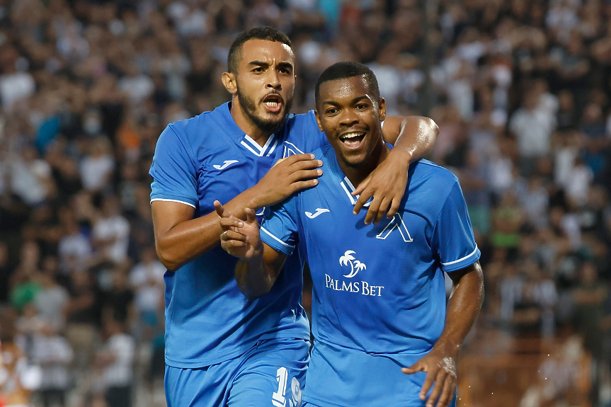 Това даде желания от Станимир Стоилов резултат и "сините" поведоха в 25-ата минута. Лефтерис Лирацис, който пропусна първия двубой в София, подаде назад към вратаря Доминик Котарски, който обаче бе изпреварен от Роналдо. Бразилецът изскочи на празна врата и вкара с лекота за 1:0.