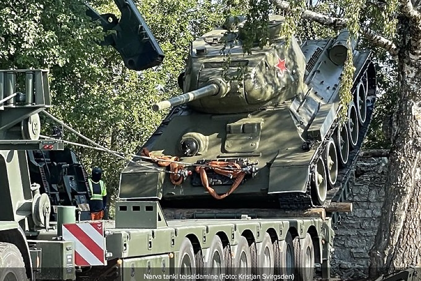 Край третия по големина град в Естония Нарва, в който живее многобройно рускоезично население, копие на танк Т-34 с червена съветска звезда е поставено на върха на паметник в памет на съветските войници, загинали при освобождаването на Естония от нацистка Германия по време на Втората световна война.