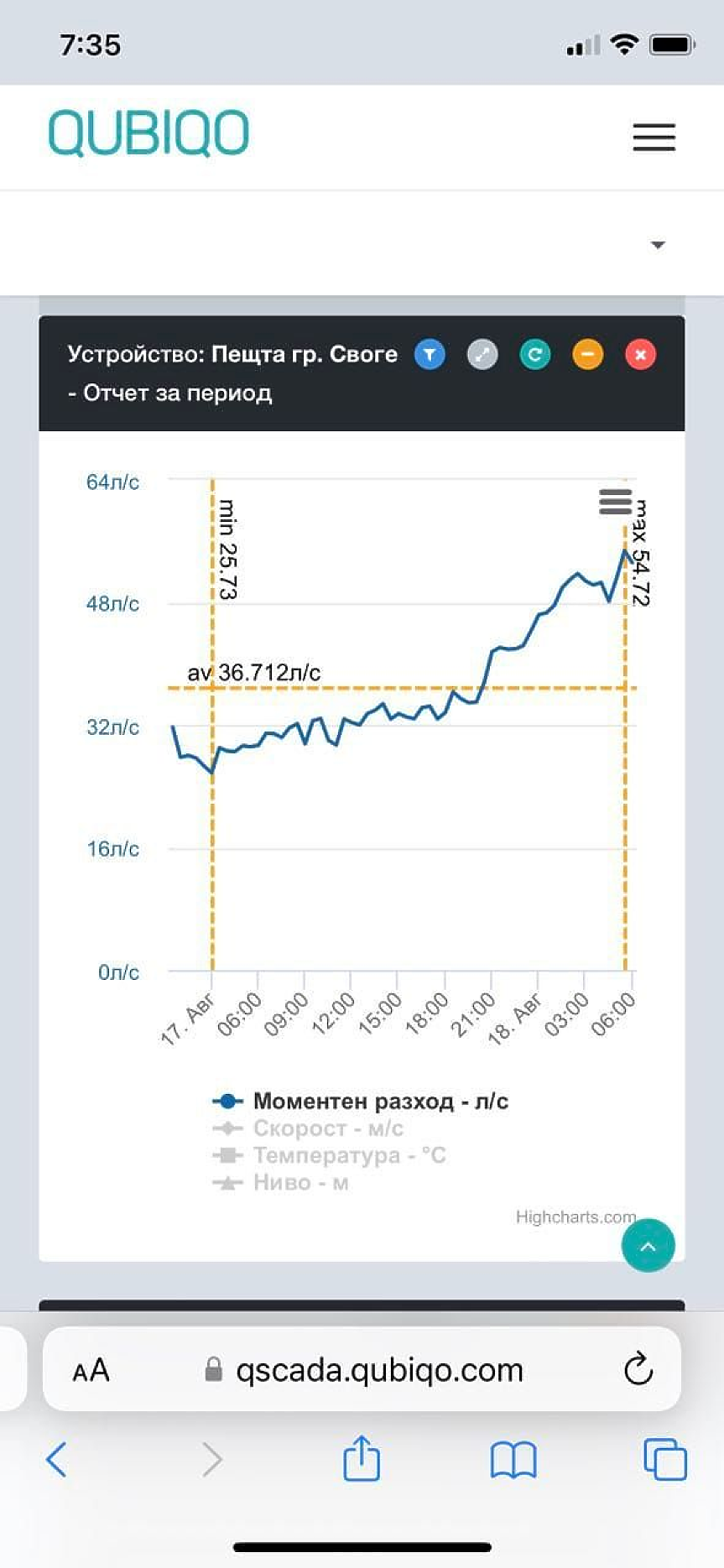 Новото съобщение от сутринта, бе че водата вече извира в обем над 54 литра - това отчита поставеният специално за целта от ВиК измервателен уред за дистанционно наблюдение.
