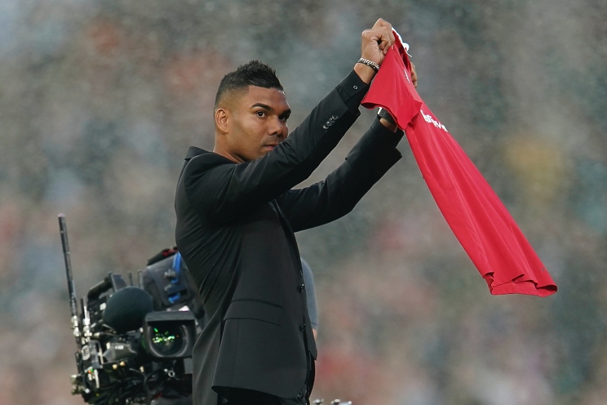 До ексцесии не се стигна, а само до дребни инциденти със сбивания и хвърлени предмети. А преди първия съдийски сигнал бе представено новото попълнение Каземиро (горе), привлечен за 60 милиона паунда от "Реал" (Мадрид).