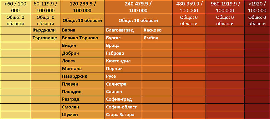 На-висока остава заболеваемостта в Силистра, София-област, Стара Загора, Кюстендил, Перник, Благоевград, но и там върви надолу, според обобщена информация към 21 август.