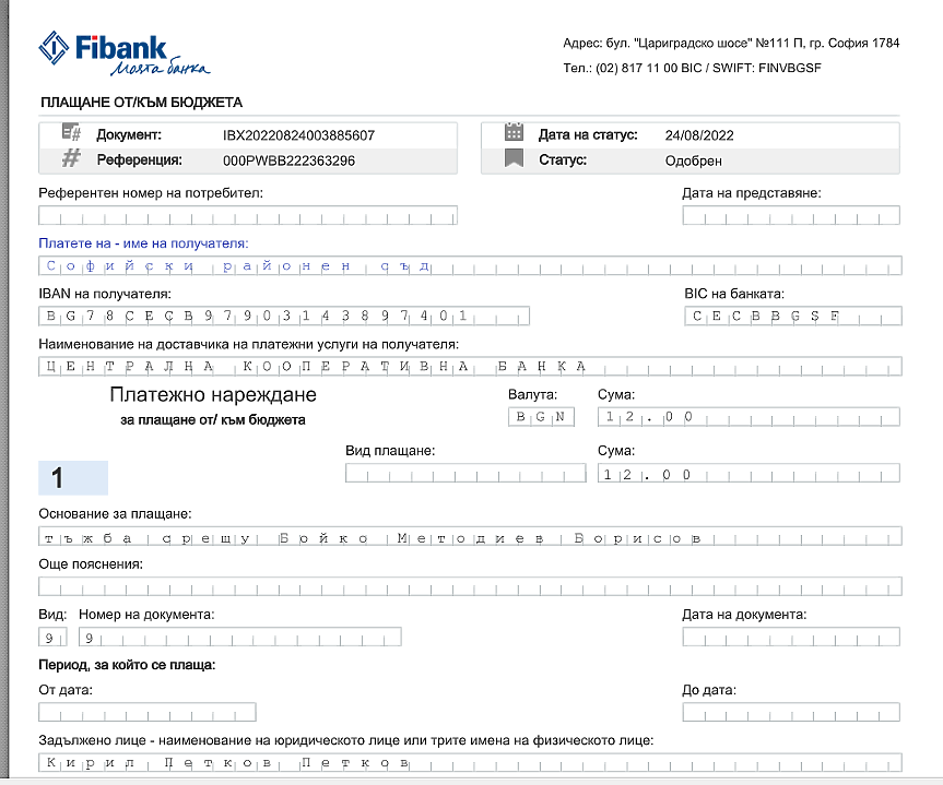 "Делян Добрев каза, че делото било в грешния съд – това не е вярно, документите са внесени в компетентния Софийски районен съд. Каза, че не е внесена и такса от 20 000 лева – това също не е коректно. Всички дължими държавни такси за този етап на делото са платени, за което има приложени документи.