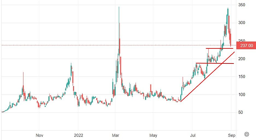 Към 17,30 часа българско време октомврийските газови фючърси на нидерландския хъб TTF поевтиняват в рамките на деня с 10,5% към 237,50 евро за мегаватчас, отстъпвайки за трети пореден ден на търговия от ценовия връх около 342 евро за мегаватчас, достигнат в края на предходната работна седмица (на 26-и август), съобщава БНР.