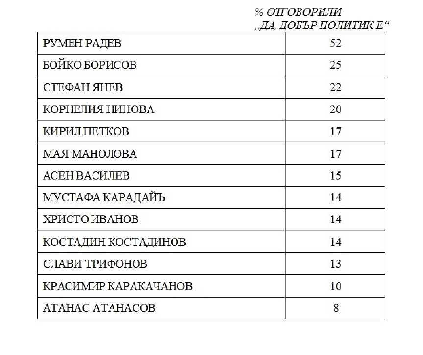 Ето и личните рейтинги на политическите лидери, измерени от "Медиана":