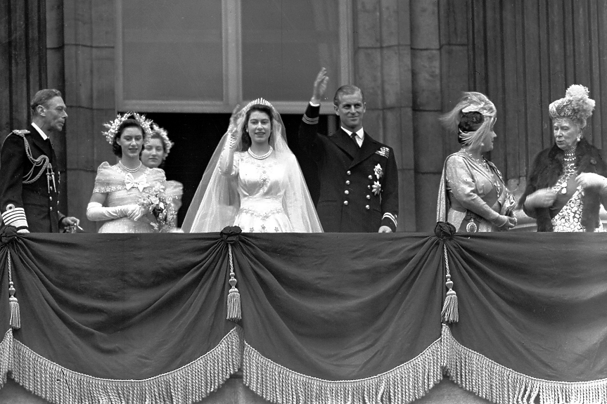 Сватбата все пак се състои. Немските роднини, включително и сестрите му, не са поканени. Двамата се женят в Уестминстърското абатство. Войната е приключила току-що и има криза. Платът за роклята на бъдещата кралица е купен с купони. Е, модният дизайнер Норман Хартнел, бродира върху нея 10 000 перли, но все пак Елизабет е принцеса.