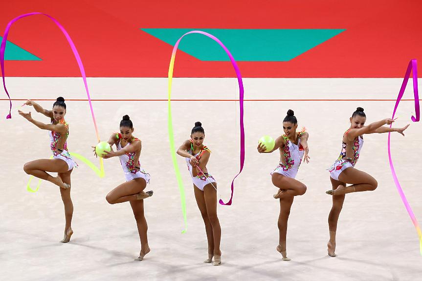 Българският тим представи изключително съчетанието си с три ленти и две топки, което е ново за отбора, и получи най-високата оценка от 32,800 точки, от които 16,100 за трудност, 8,500 за артистичност и 8,200 за изпълнение.