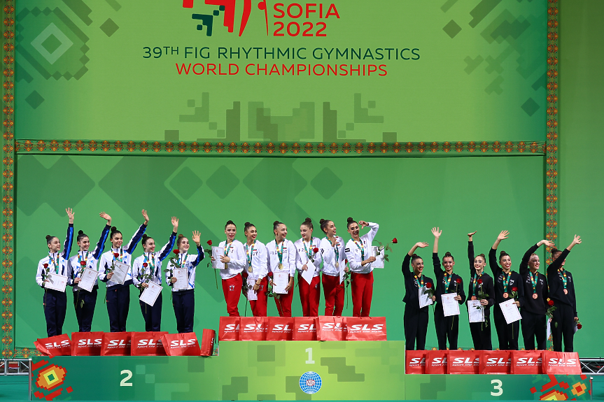 Весела Димитрова пък печели първата си Световна титла като треньорка, след като се окичи с олимпийско злато в Токио с предишния ансамбъл.