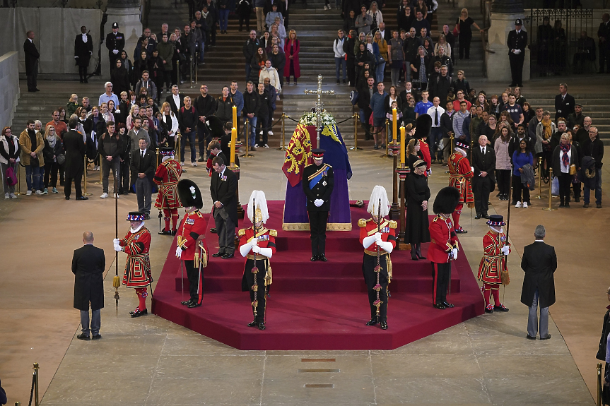 Осемте внуци на покойната британска кралица Елизабет Втора се събраха днес край ковчега ѝ на мълчаливо бдение, предаде АП, информира БТА.