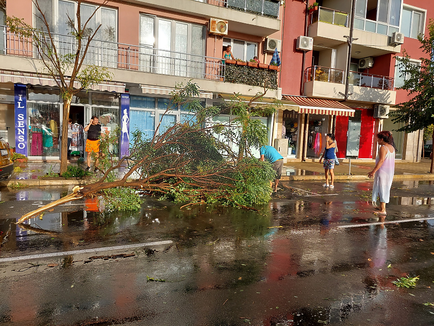Частично бедствено положение беше обявено в Поморие и в Бургас след разразилата се в съботния следобед буря. Паднали дървета, съборени къщи, обърнати коли и яхти, завлечени в морето, пострадали хора. Това е част от равносметката от стихията, която се развихри в Бургаско и се усети най-силно в селищата по морето.