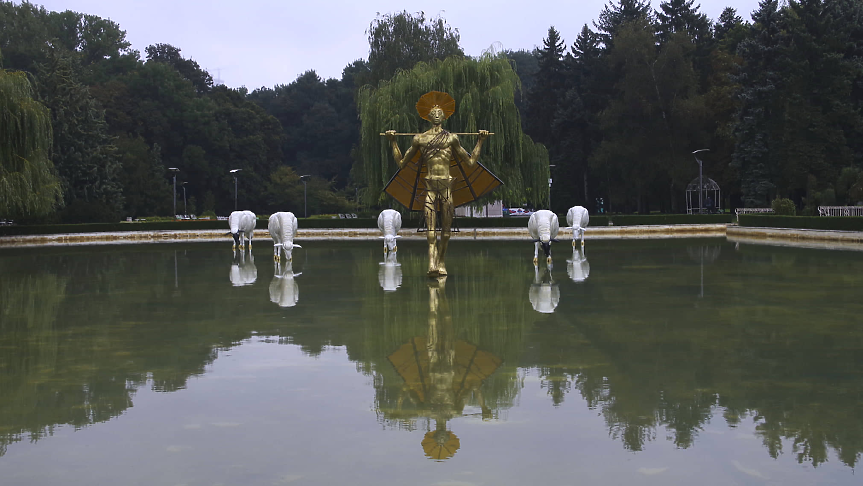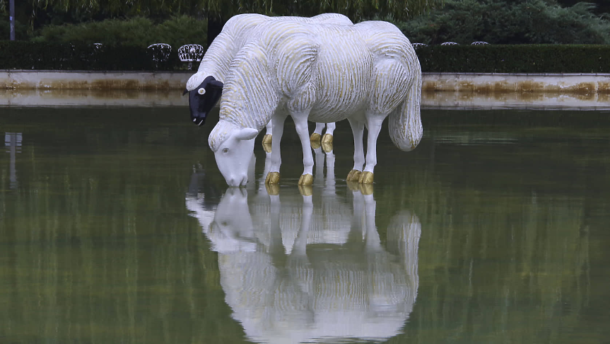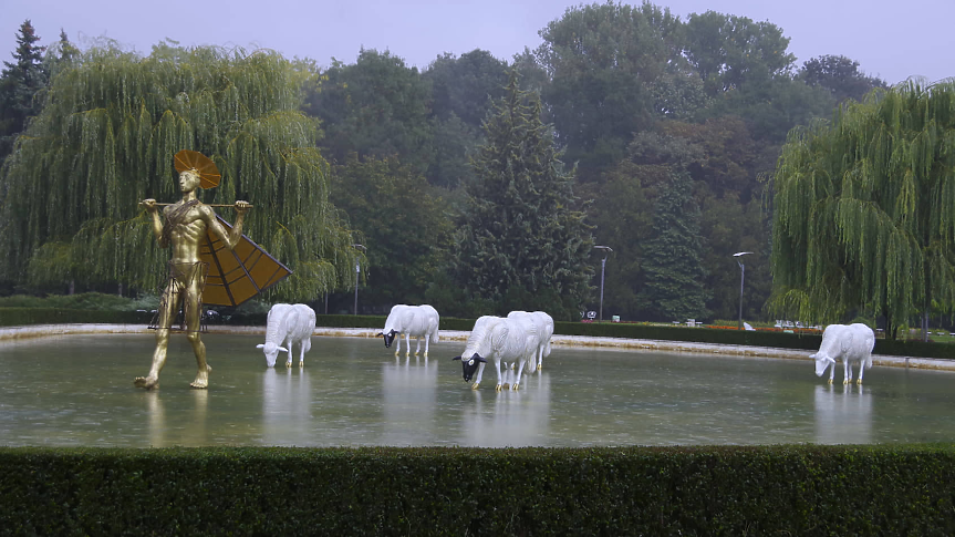 Пастир е повел овцете си на „Водна паша“ в Южния парк. Скулптурната композиция на Павел Койчев, която бе пресъздадена от метал и стъкло специално за езерото в софийския парк, днес бе официално открита.
