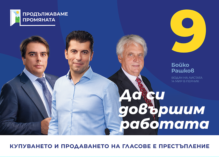 "Не мога да кажа, че съдебната система няма отношение към неудачите в страната, но най-голямата вина за състоянието на държавата е на политиците. Една част от тях са вече над 30 г. във властта. Те вземаха политическите решения. Те продаваха държавни активи на смешно ниски цени. Има много какво да прави "Продължаваме промяната". Това е съвършено нова партия. Тя не е от старите, които на практика носят основната вина и отговорността за състоянието на държавата. "Продължаваме промяната" управлява в тежки условия - война на няколкостотин километра от границата, енергийна криза, пандемия. Но се увеличаваха заплати и пенсии. Запазиха се сравнително поносими цени на енергията в сравнение с европейските. Българският избирател може да съпостави онова, което се постигна само за 7 месеца, с онова, което е направено 10-12 г. по време на управлението на ГЕРБ. Колко и въобще повишиха ли се тогава заплати и пенсии? Какво беше отношението към младите хора? Дали имаше безплатни детски градини, каквито кабинетът "Петков" осигури? И ред други неща. Българският избирател трябва сериозно да помисли по тези въпроси когато избира кой да го управлява през следващите години", каза още Бойко Рашков.