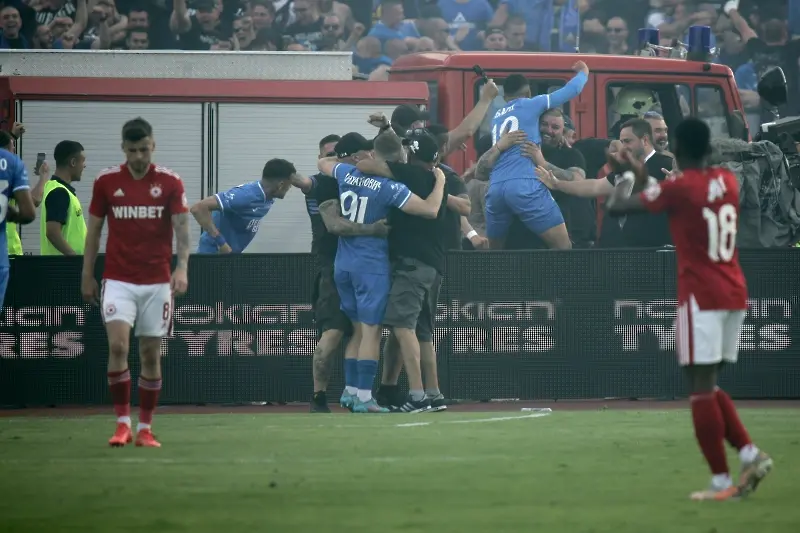А когато димната завеса се поразсея, "Левски" поведе. Томас Лам направи груба грешка, изгуби топката непредизвикано, "сините" овладяха, кълбото стигна до Илиян Стефанов и той отправи удар, а след рикошет Густаво Бусато се оказа безпомощен. 1:0 за "Левски"! Синята част на стадиона изпадна в дива радост.